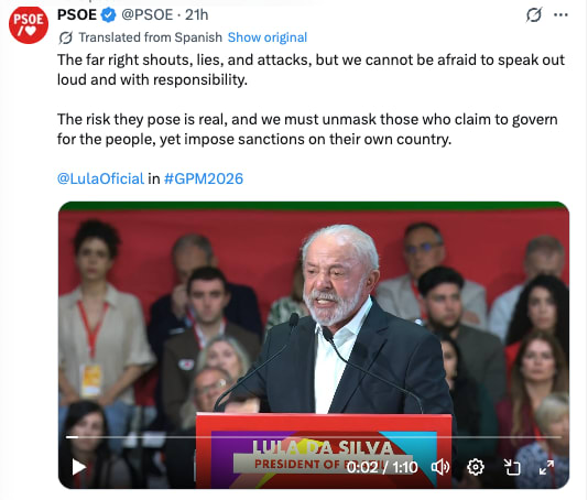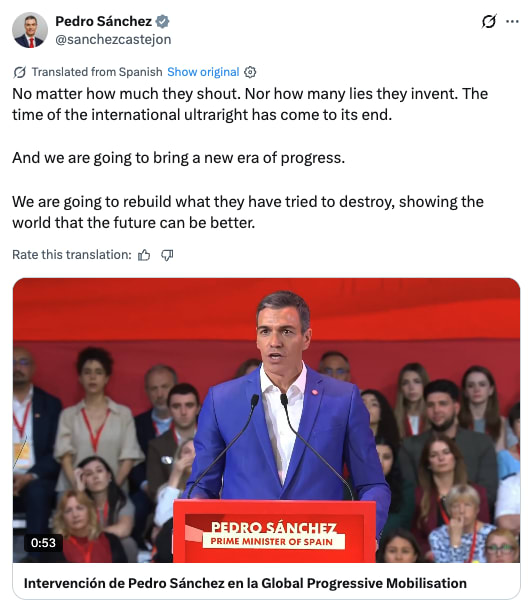 Sánchez spearheaded the conference and had a lot to say about “the far right”. In one speech he warned: