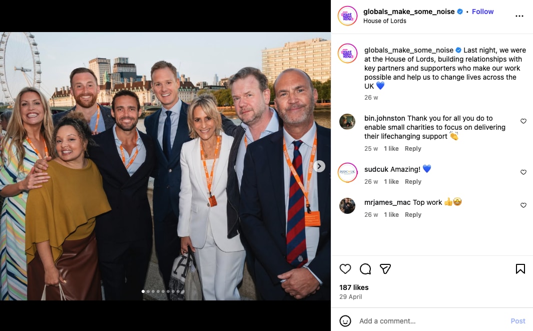 All proceeds go to Global’s charity “Make Some Noise”. Here are some photos of the charity/ Global presenters at the House of Lords in April: