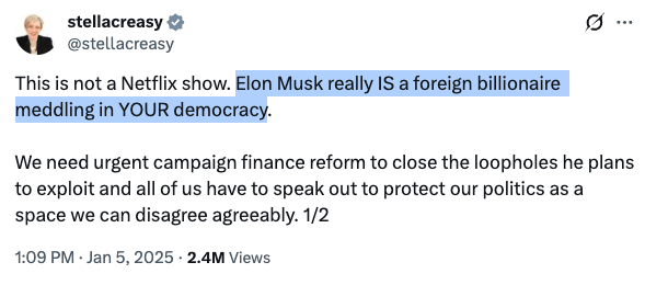 Left-wing politicians often like to complain about foreign billionaires interfering in British democracy, especially when it comes to Elon Musk: