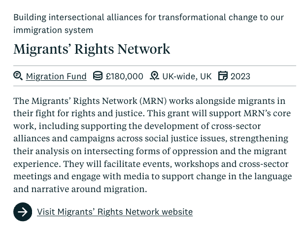 I had a sense of deja vu reading this, as it sounds very similar to the quote used by the Paul Hamlyn Foundation (PHF) for its “Migration Fund”: