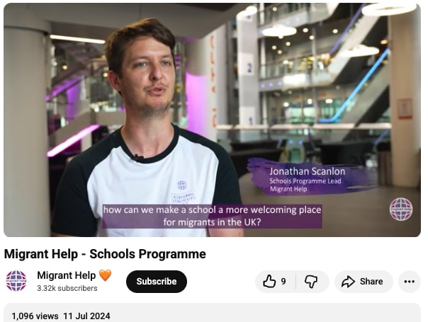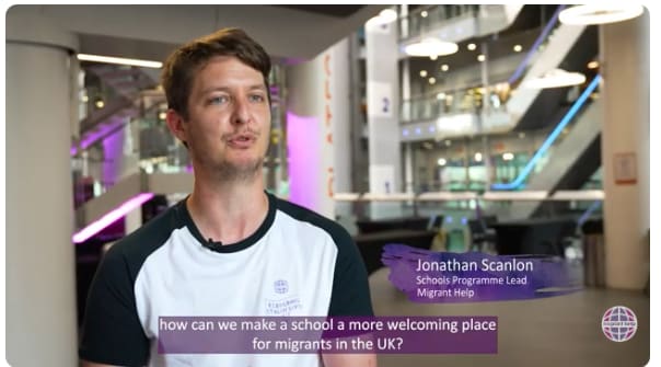 In it, Jonathan Scanlon, the charity’s Schools Programme Lead, emphasises that the overriding theme of “assemblies and workshops” is “how can we make a school a more welcoming place for migrants in the UK?”