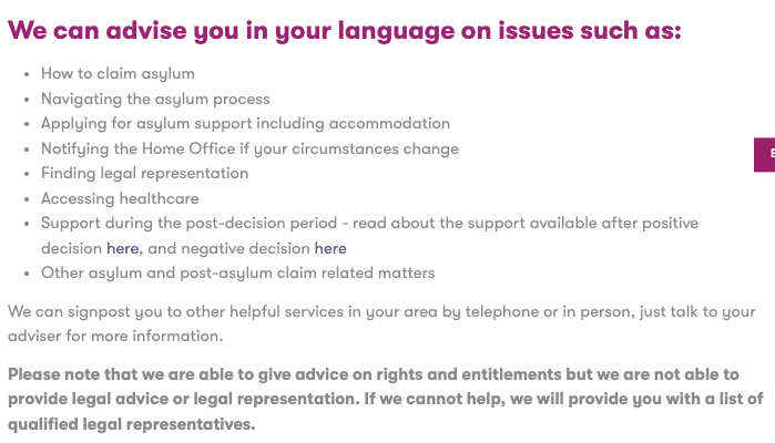 Support during the post-decision period – read about the support available after positive decision here, and negative decision here