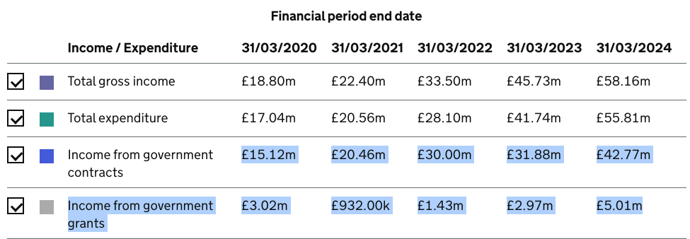 The worst example of this (in terms of expense) is a charity titled Migrant Help. It received £153,592,000 in taxpayer funding between 2020-24.