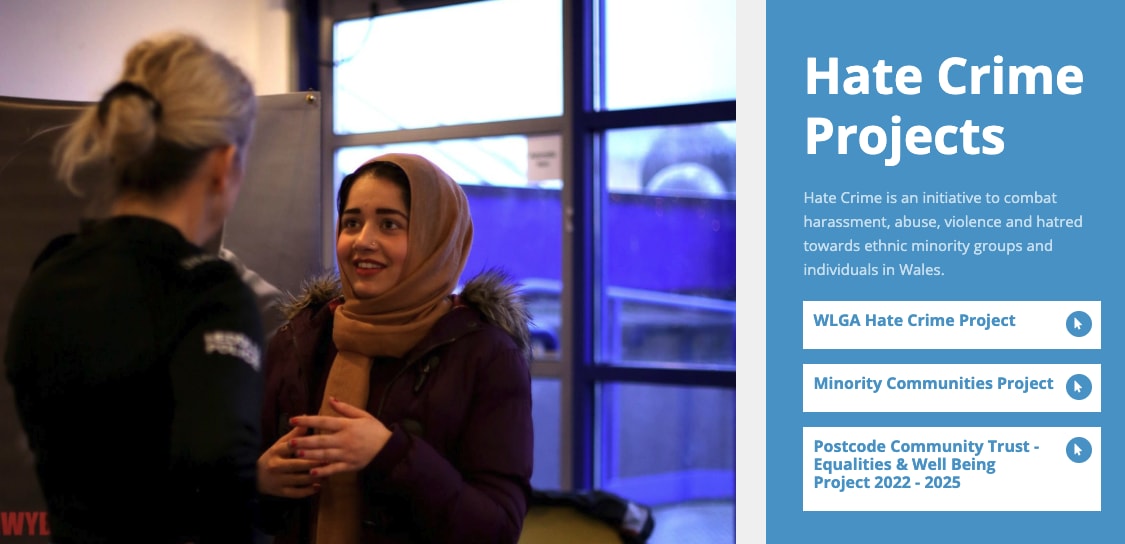 Race Council Cymru says it’s “Building an anti-racist Wales through community action, education, and systemic change since 2010.” Its initiatives include “the Race Charter Mark in Wales, an annual benchmarking exercise that will rank and publicise the best employers for Black Asian and Minority Ethnic people in Wales” and Hate Crime Projects: