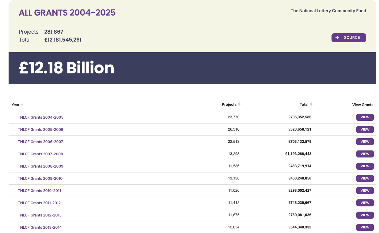 Here are TNLCF’s grants (for 2004-2025) – a whopping £12.18 billion’s worth!