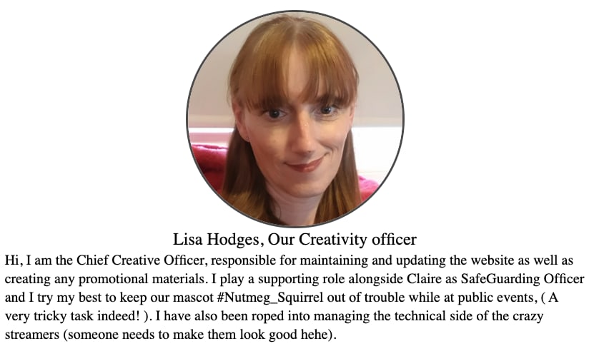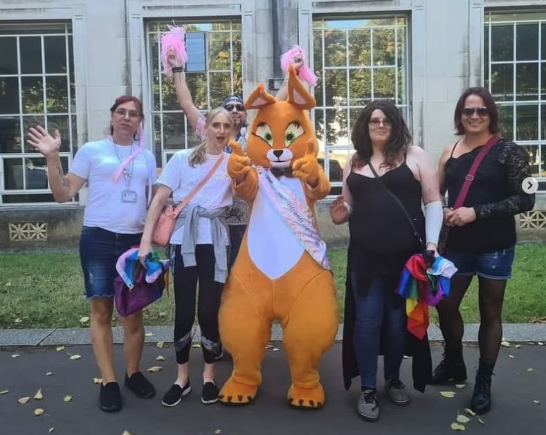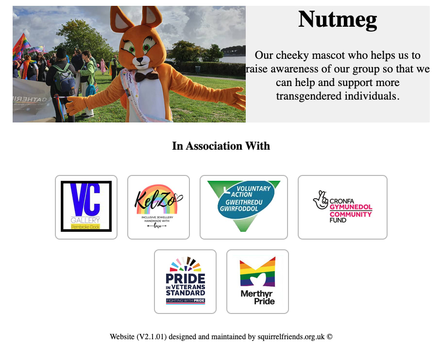 Nutmeg (below) is the group’s “cheeky mascot who helps us to raise awareness of our group so that we can help and support more transgendered individuals.” You can also see the National Lottery Community Fund mentioned below: