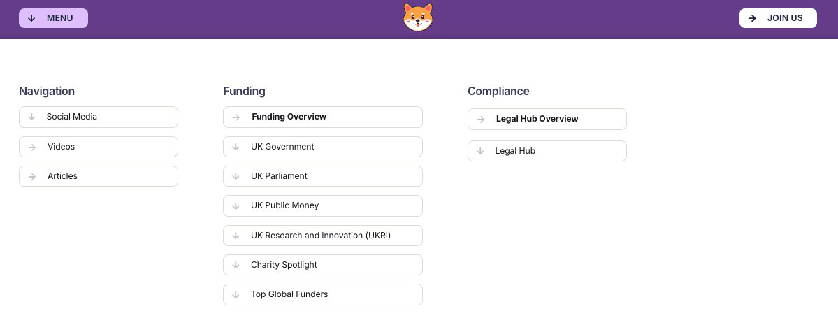 If you go to the website and click “Menu”, you will be able to trawl multiple grants (from universities to charities):